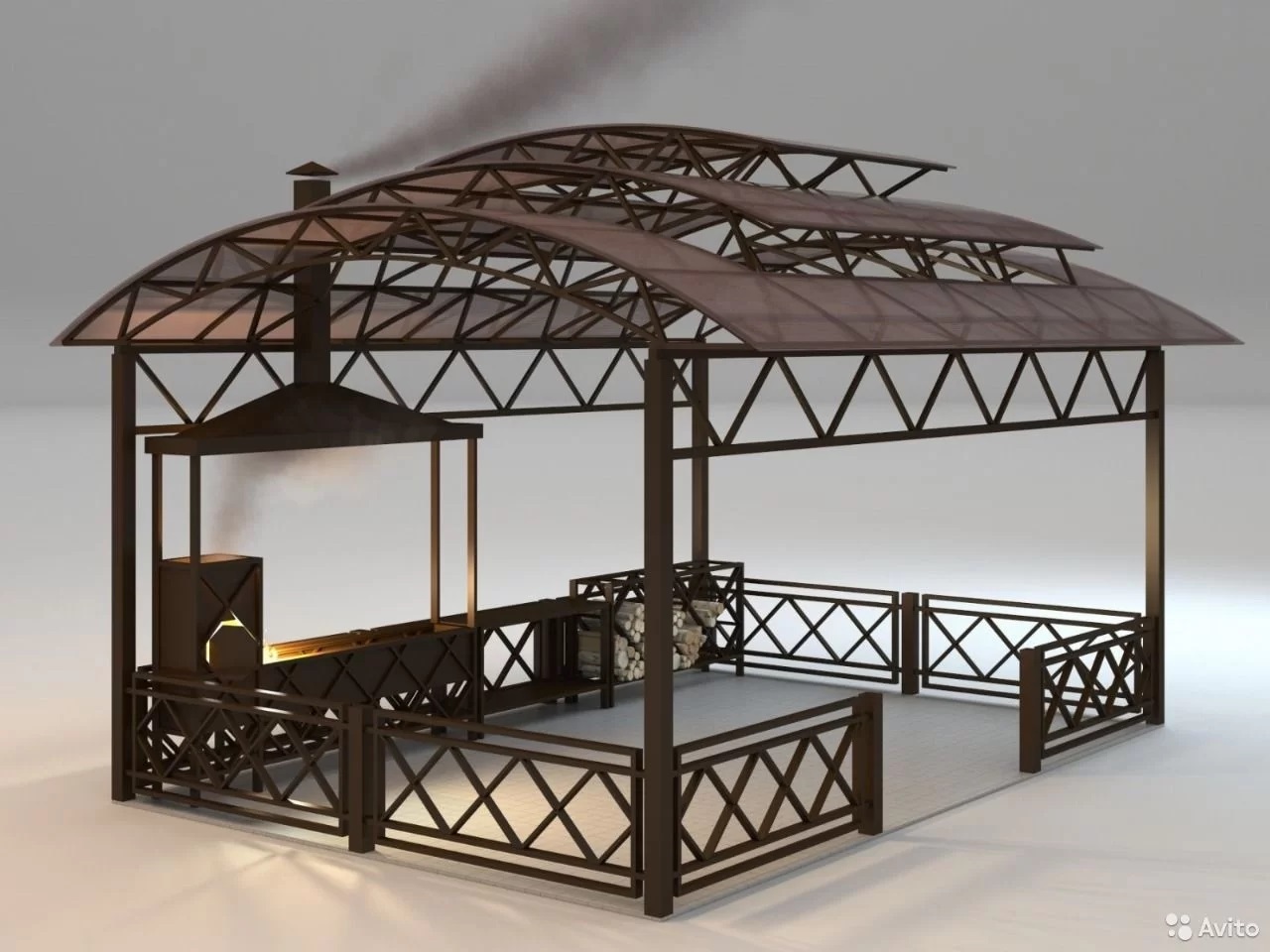 Это могут быть: 1. Автомобильные навесы 2. Строительные конструкции. 3. Малые архитектурные формы 4. Пристройки к дому.